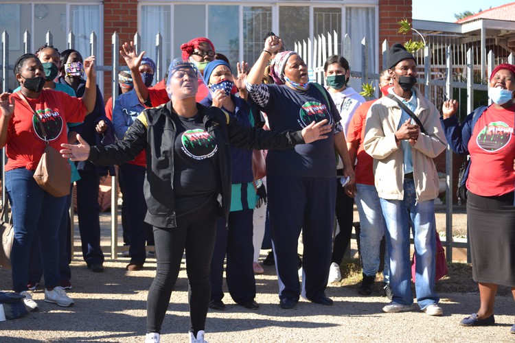 The protest was led by National Education, Health and Allied Union (NEHAWU), whose shop stewards confirmed that they demanded 11 colleagues at Aandmymering who had tested positive for Covid-19 be quarantined.