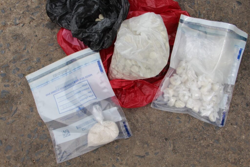 An undercover operation was conducted, which led to the arrest of the pair soon after selling drugs valued at R40 000,00. Six hundred and forty-nine (649) mandrax tablets, forty (40) packets of crystal meth and transparent plastic containing CAT drugs were seized.